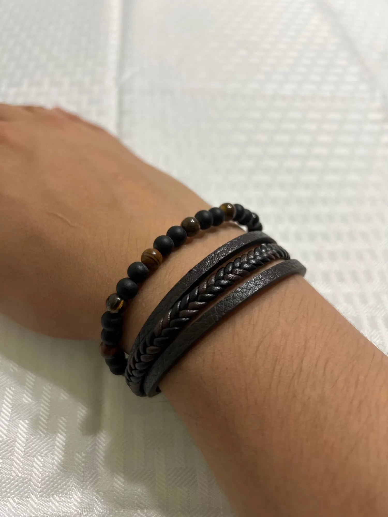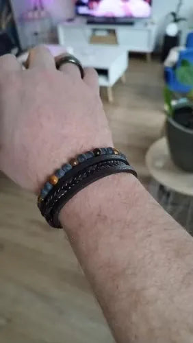 "Love this bracelet! It's so stylish, and the tiger eye beads really pop! Got compliments the first day wearing it.😊 Wraps around comfortably and matches most of my outfits. Great quality too. Highly recommend to anyone looking to up their fashion game!💪🔥"